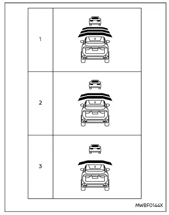 Wenn es nicht möglich ist, die Einstellungen vorzunehmen oder die Anzeige eingeschaltet bleibt, kann dies darauf hinweisen, dass das System defekt ist. Obwohl das Fahrzeug unter normalen Bedingungen weiterhin gefahren werden kann, lassen Sie das System überprüfen. Es wird empfohlen, für diesen Service einen autorisierten Händler für NISSAN-Elektrofahrzeuge aufzusuchen.
